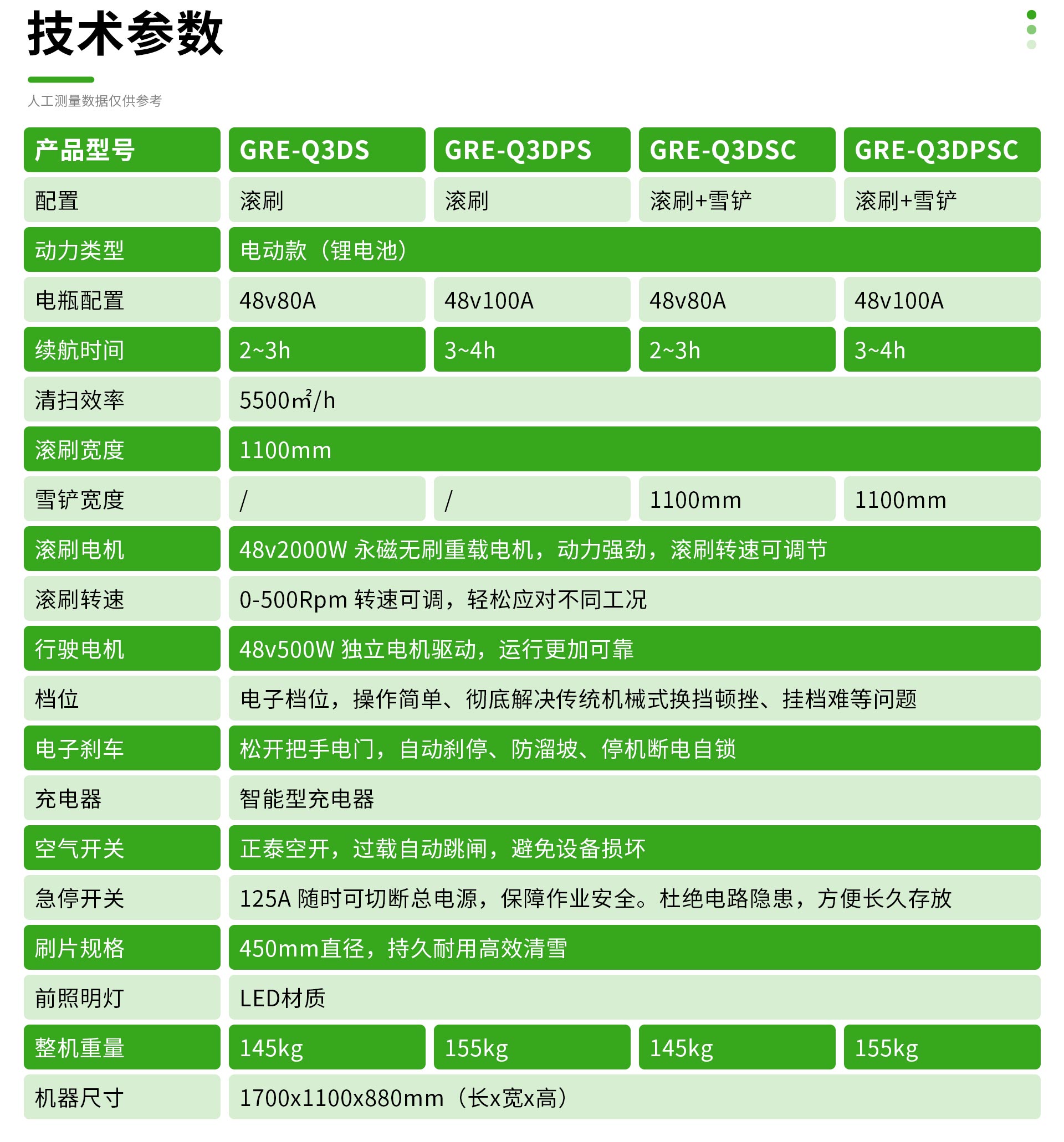 ● GRE-Q3D系列电动扫雪机标配48V80A锂电池、可选配100A(磷酸铁锂)